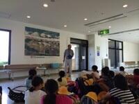 自然の家の先生からお話を聞いて、今は施設内を探検しています。