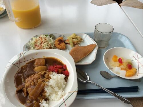 お昼はバイキング方式で、今日はアジフライやグレープフルーツゼリーなどを美味しくいただきました。