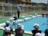 これから始まるプールでの活動に向けて、注意事項を聞いたり、「よろしくお願いします。」のあいさつをしたりしました。