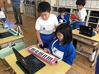 日本の伝統楽器「琴」について学びましたこれは、文化庁の芸術家派遣事業の希望がとおり実現できました。12月15日(金) 音楽の時間に、琴奏者の2名の先生が来校し、5・6年生を対象にご指導いただきました