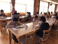 1・2年教室、ランチルームで給食の配膳の様子を見学いただき、試食会を実施しました。食事中は、どんな牛乳を飲んでいたかビン?三角?など、懐かしい給食エピソードで盛り上がりました。食事後、栄養教諭から給食指導について、食物アレルギー対応や献立作成の工夫等について説明がありました。