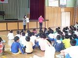 今日は初めての英語集会がありました。最初は、あいさつの歌を英語で歌いました。初めて聴く1年生も上級生に合わせて一生懸命歌いました。