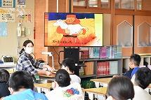 千塚小児童の読書活動の様子や、読書カレンダーの頑張りなどを紹介すると感嘆の声も上がりました