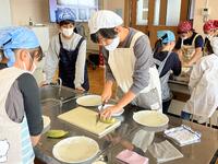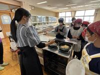 ①まずは、教師が調理し、手順を確認しました。味見もばっちり!