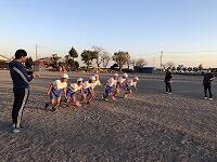 朝早くから集まって、校長先生とキャプテンの話を聴いてから、身体慣らしをしました。