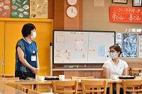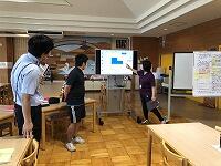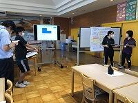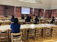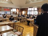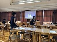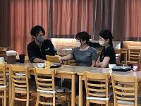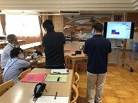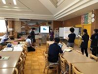 放課後、ランチルームで「授業研究会」を行い、振り返り話し合いました。