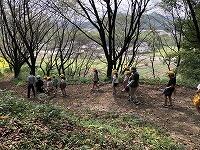 ↓↓ 植樹した「トキワマンサク」の苗も順調 「ナツズイセン(夏水仙)」がきれいな桃色の花を咲かせています