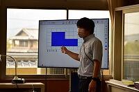 ↓↓ 大型テレビを前に、自分の考えをプレゼンテーション。図や式、言葉で表現してあるので、わかりやすく説明することができました