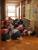 前回の訓練を生かして、素早く身を守ることができました学校の中のどこにいても、また登下校の途中でも、家で過ごしているときも、自分の命は自分で守れるよう、真剣に避難訓練をしておくことが大切ですね