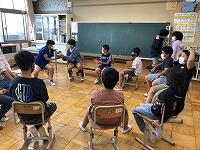 3・4年生は、3年生教室に移動して、「いす取りゲーム」を楽しんでいました