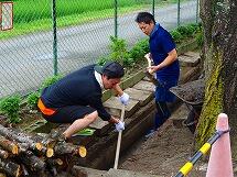 小雨の中、約100名の保護者の方、及び児童の皆さんにご協力いただき、奉仕作業を実施しました。側溝掃除、南門のさび落とし、外階段掃除、窓ふき、ベランダ掃除、トイレ掃除、体育館のテープ貼り、除草等々、普段の清掃では行き届かない部分をきれいにしてくださり、本当にありがとうございました!!