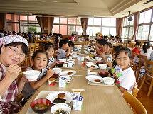 今日の夏野菜カレーには、栃木市産の豚肉、にんにく、玉ねぎ、なすが使われています。栃木市では、おいしい食材がたくさんとれますね。生産者の方に感謝の気持ちをこめて残さず食べましょう。