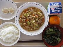 今日の給食のメニューは、「ごはん 牛乳 キャベツと豚肉のみそ炒め えびしゅうまい わかめスープ 冷凍みかん」でした。