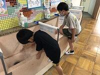 ↓↓ 普段の清掃で、子どもたちの手の届かないところを中心に、きれいにしていただきました。