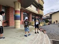 ↓↓ 校舎に入るときは、昇降口の前で靴底の砂をよく落としてから…守っていますね
