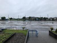 急に空模様が変わり、勢いよく雨が降り出しました。10分ほどで、校庭は湖のように…