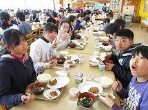 小学6年生にとって、今日が小学校で最後の給食の日ですね。調理員さんも楽しい給食の思い出ができるよう、心をこめて給食を作ってくれました。6年間の給食を思い出しながら、みんなで楽しく食べましょう。中学校に進学しても、給食をもりもり食べて、元気に過ごして下さい。ご卒業おめでとうございます。