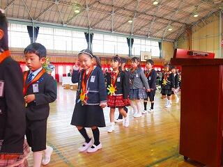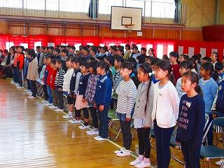 今日は修了式!6年生卒業のあと,1年生から5年生の元気な顔がそろいました。