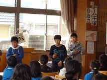 給食委員会を中心に、給食を作ってくださっている調理員さんをお招きして『給食感謝の会』が開催されました。校長先生から、全国給食週間がなぜ1月なのかや、「いただきます」「ごちそうさま」「ありがとう」の意味を教えていただき、給食カルタの表彰も行われました。
