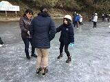 3年生の中には、5年生に靴を履かせてもらった児童もいて、上級生の優しさを肌で感じることができ尊敬の気持ちを抱いたようです。また、初めてやる子と経験したことのある子は半々ぐらいでしたが、天然の氷の上の感触は今までとは違ったらしく、保護者の方々にも手を持ってもらいおそるおそる滑っていた子や転びながらも自力で頑張っていた子などさまざまでしたが、どの子も楽しく取り組めていた様子が感じられました。貴重な経験となったことと思います。