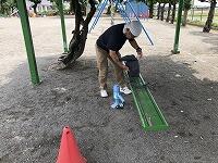 サッカーゴールに向かってボールを蹴ったり、うんていや登棒で遊んだり…