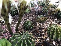 そんな朝ですが…校舎東側(体育館通路脇)の花壇のサボテンが満開です