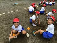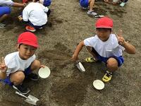 前日の夕立で砂が少し湿っており、固めやすくなっていたため、思い思いの遊び方ができました。