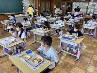 2学期初日より早速、おいしい給食が始まりました。今学期から電気炊飯器が新しくなり、よりおいしく炊けたごはんをいただけるようになりました。