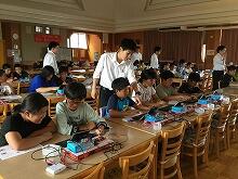 先週5年生が体験した、栃木工業高校の皆さんによる「プログラミング教室」を6年生で行いました。はじめは慣れないタイピングに苦戦する様子も見られましたが、自分が出した指示通りにランプがついたり消えたりすることに驚き、夢中で活動に取り組んでいました。