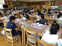 コロナ禍で、ランチルームでの給食を5・6年生のみにしていましたが、2学期から3・4年生もランチルームで給食をとることに変更しました夏休み中に、給食主任の先生を中心に話し合い、準備を整えてきました