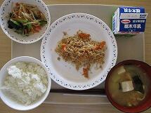 今日の給食のメニューは、「ごはん お魚丼の具 牛乳 小松菜ともやしのおひたし じゃが芋のみそ汁」でした。