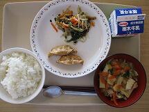 今日の給食のメニューは、「ごはん 中華丼の具 牛乳 揚げぎょうざ 中華和え」でした。