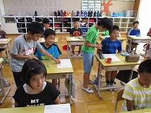 本校では、図書の本を借りた曜日ごとに、ポイントカードにはんこを押してもらうシステムがあります。毎日借りるとポイントカードがいっぱいになり、ガラポン抽選会に参加できます。抽選会では手作りのいろいろな賞品がもらえます!このシステムは3年目になり、飛躍的に貸し出し冊が増え、楽しみながら図書室に通う子どもたちが多くなりました。