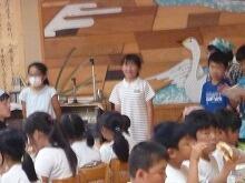 給食の時間に、歯に関する作文を 6年生に読んでもらいました。