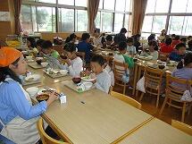 豚肉は給食室で漬け込み、一枚ずつ丁寧にならべてオーブンで焼きました。給食では珍しい豚ロースの切身に、子ども達も目を輝かせて食べていました。