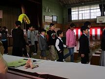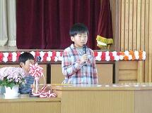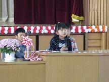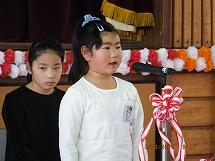 かわいい1年生が、6年生と手をつないで入場。担任の先生に名前を呼ばれて、全員はっきりと返事をすることができました。そして、2年生から手作りメダルのプレゼントをもらって、とてもうれしそうでした。明日から元気に来てくださいね。