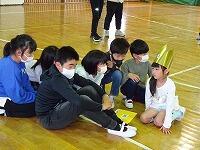 ロング昼休みに3年生と5年生でドッジボールを行いました。まずは、外野を決めました。なかなか外野が決まらなかった時に、5年生が3年生の輪の中に入り、みんなで話し合って決めている姿が印象的でした