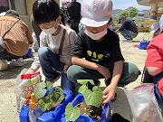 学校に帰って、苗を植えました。技能員の先生に、土の分量や苗の入れ方等も教わり、真剣に取り組む2年生今回は、アシストネットボランテイアで来てくださった、保護者の方3名と地域コーディネーターの方1名にも大変お世話になりました