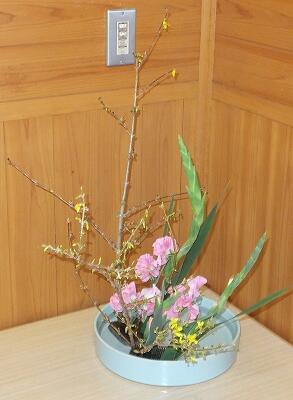 地域にお住まいの生け花の先生・山中友子 様 が、本校の玄関に花を生けてくださっています。