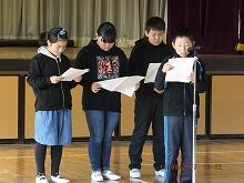 人権標語学年代表の発表、運営委員によるなかよしパトロール隊報告、運営委員による人権作文朗読、校長先生のお話がありました。