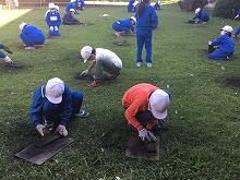 3・4年生は、輪投げとペタンクを行いました。グループで高得点が出ると、みんなで手をたたいて大喜び!すっかりボランティアの方と親しくなり、最後のインタビューも盛り上がりました。