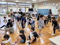雨のため校庭で遊ぶことはできませんでしたが、教室を広く活用して行いました。