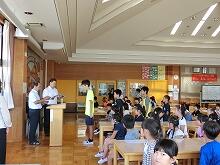 ほかにも、校長先生からの宿題である“インタビュー名人”のやり方を6年生が実演して見せたり、たくさんの表彰があったりしました。また、最後に児童指導主任から夏休みの過ごし方についての話がありました。