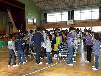 ウォークラリーのあとは、また体育館に集まって在校生から6年生へ向けて歌とワールドグループの写真入り寄せ書き、お花の贈り物をしました