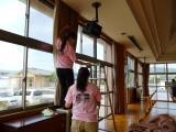 ↑ 今年はランチルームのカーテンをクリーニングに出すことになり、レールからはずしています。