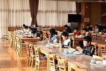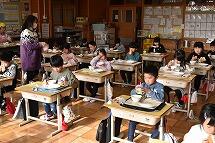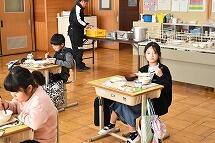 子どもたちは美味しい給食を食べながら、楽しそうにお話に聞き入っていました