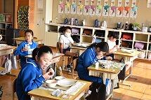 (給食を食べる時間を確保するため、事前に録音した音声を流しています)