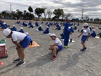 校庭に広がって応援席にレジャーシートを広げて並び、準備運動を行いました。