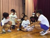 8月20日(木)体育でプールに入りました。とても暑い日だったので、水の中は、とても気持ちがよくて、みんな楽しく泳いでいました。だるま浮きやくらげ浮き、けのび等がどんどん上手にできるようになってきました。安全に活動できるように指導をしています。