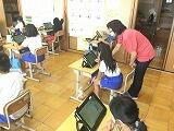1年生は、初めてタブレットで学習を行いました。指を使ってタッチしたり、マウスを使ってクリックしたりする練習をしました。とても楽しそうにタブレットを扱い、学習をしていました!